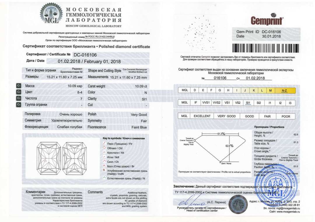 —Бриллиант радиант 10,090 карат