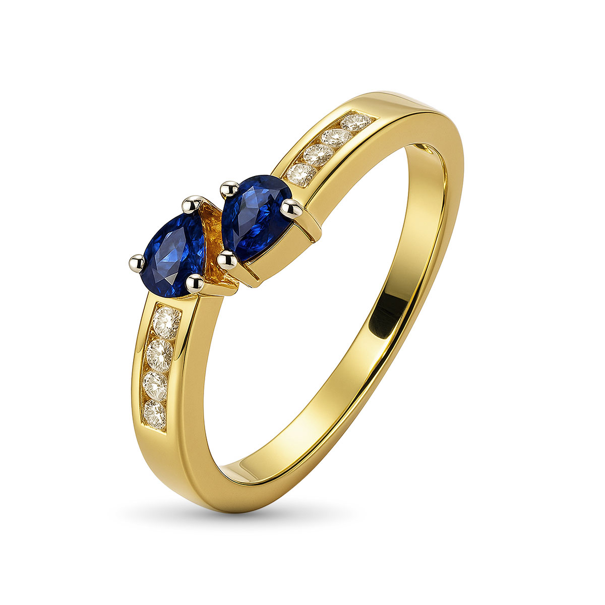 —Кольцо из желтого золота с сапфирами и бриллиантами