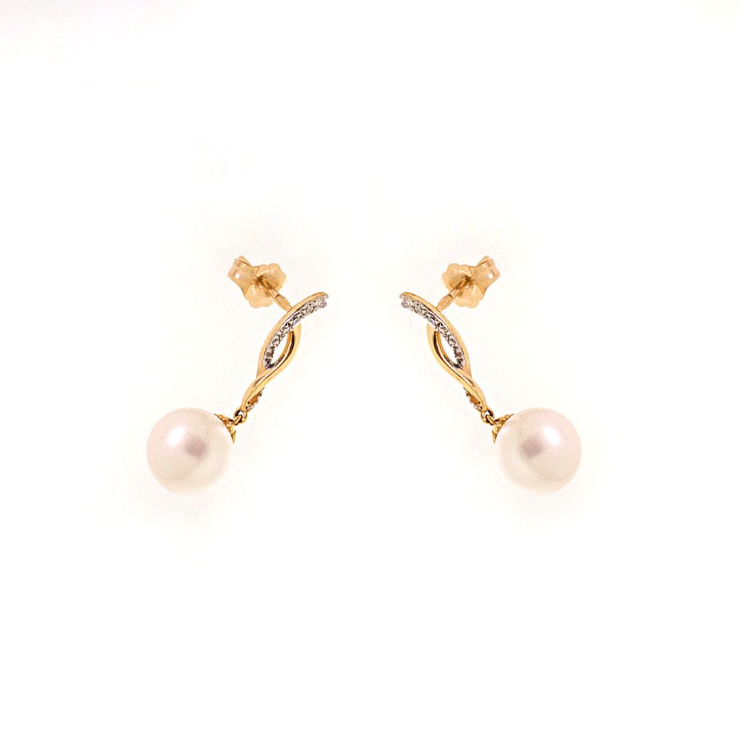 —Серьги из желтого золота с жемчугом и бриллиантами