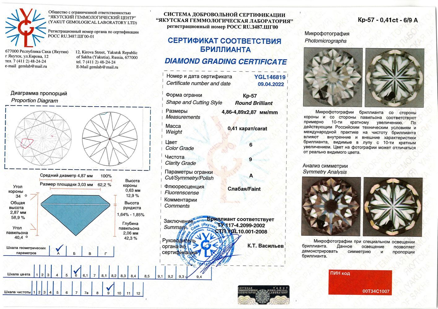 —Бриллиант круглый 0,410 карат