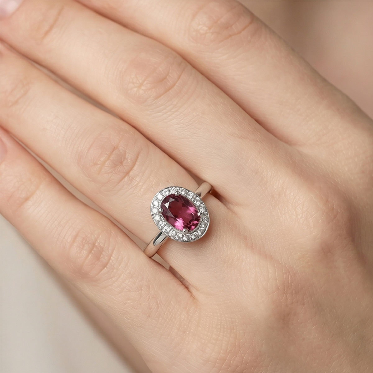 —Кольцо из белого золота с турмалином и бриллиантами