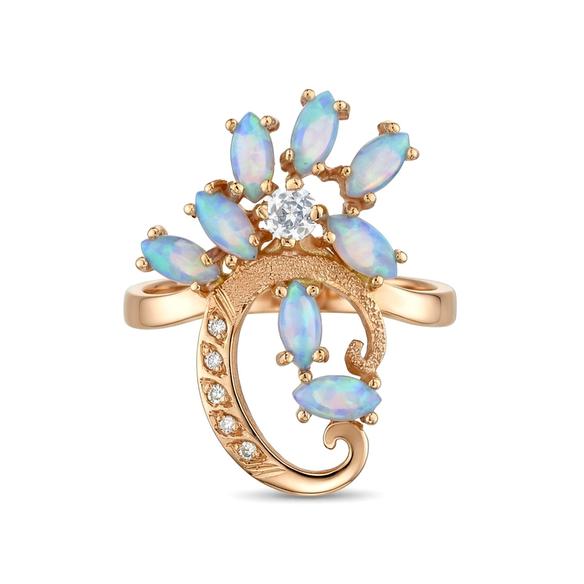 —Кольцо из красного золота с опалом, топазом, бриллиантами