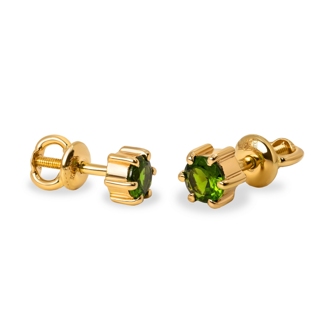 —Серьги из желтого золота с хромдиопсидом