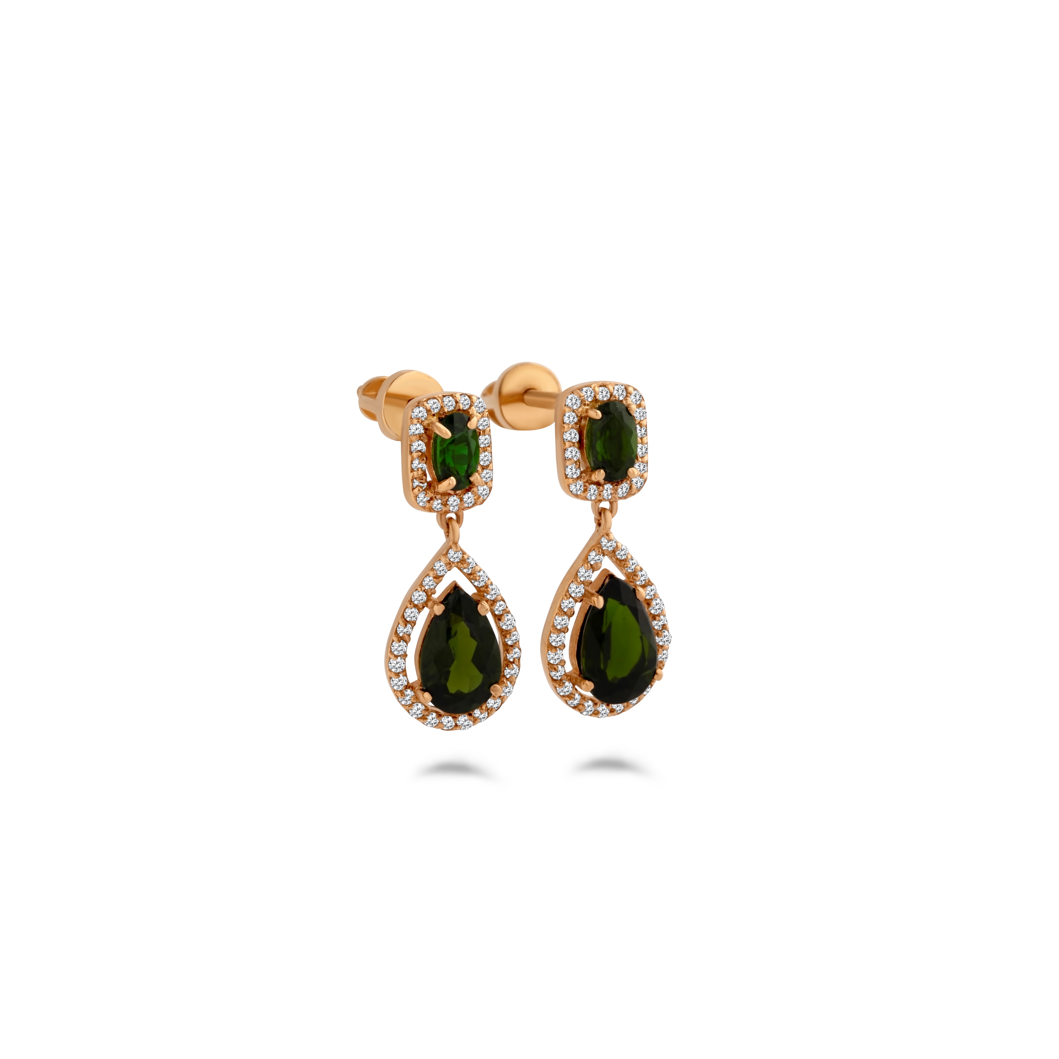 —Серьги из желтого золота с хромдиопсидом и бриллиантами